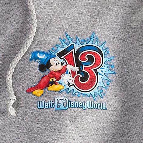 - Mickey as The Sorcerer’s Apprentice from Walt Disney’s Fantasia, plus ”13” and Walt Disney World Resort logos on front