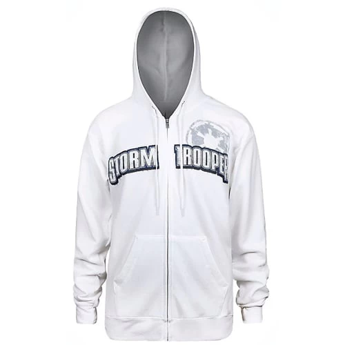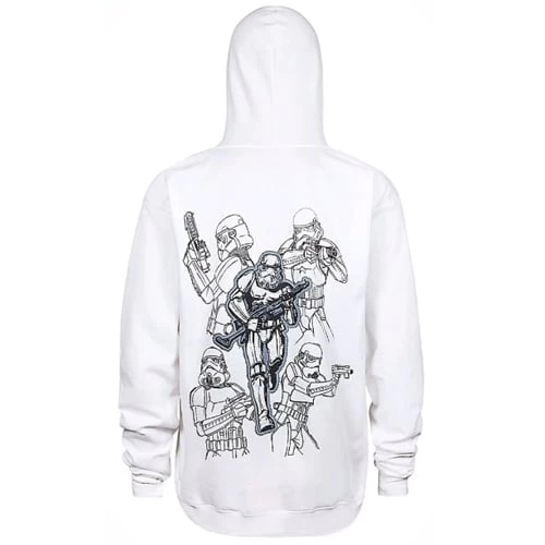 Arm yourself against the elements in this comfortable stormtrooper hoodie featuring appliqué details and screen art of the Imperial soldier.