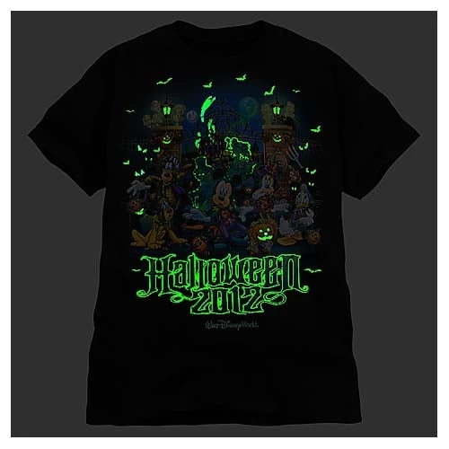 Mickey and the gang trick-or-treat at the Haunted Mansion on this frighteningly fun Halloween 2012 Tee for Men from Walt Disney World. Celebrate your inner spirits with glow-in-the-dark bats and ghosts on a thick cotton tee.