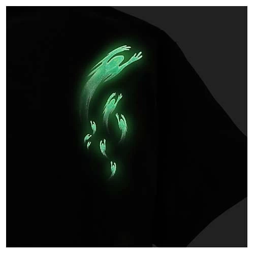 - Glow in the dark accents including bats on front and ghosts on back