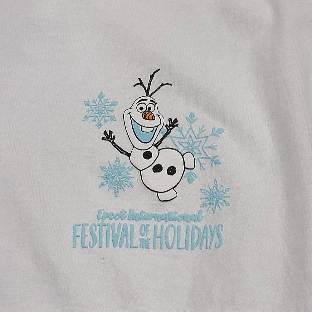 - ”Epcot International Festival of the Holidays” text on chest with Olaf artwork