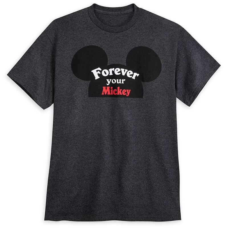 Oh, boy! Pledge to be ”Forever your Mickey” by wearing this soft jersey tee alongside the companion ”Forever your Minnie” tee (sold separately).