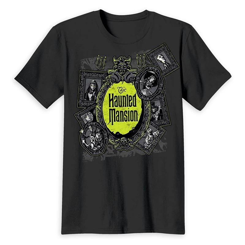Step lively, please, into The Haunted Mansion. From among the 999 happy haunts residing in our ghostly retreat, we’ve gathered a few late favorites for a t-shirt portrait gallery alongside our immortal logo.