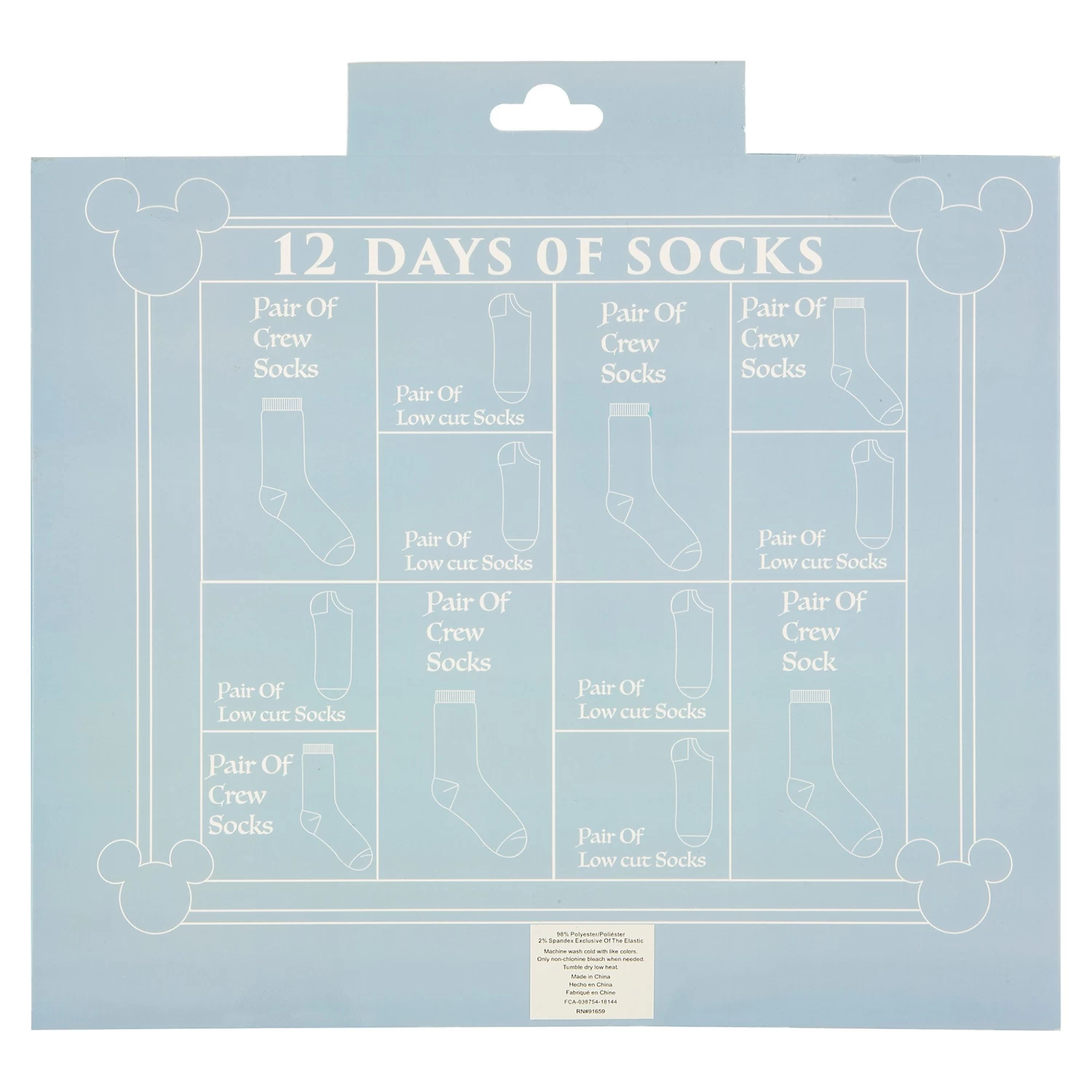 Celebrate the season by outfitting your feet in festive style with 12 Days of Socks. Featuring six pairs of crew socks and six pairs of low cut socks adorned with artwork of Santa Mickey and many more friends, this set will put a jolly pep in your step.