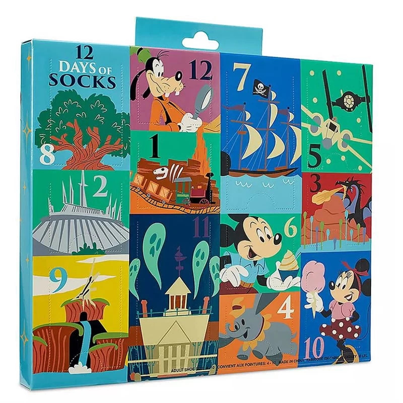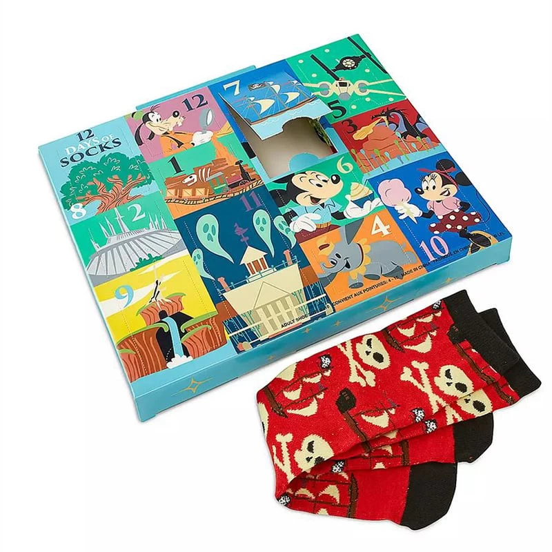 Take steps to update your wardrobe with 12 pairs of fun footwear in this sock set. You’ll go toe to toe with Mickey, Minnie, Chip ‘n Dale and walk into Sleeping Beauty Castle, Cinderella Castle and more favorite locations and attractions without even leaving your home! Presented in a decorative box with a window for each pair, this collection includes six crew socks and six low-cut socks.