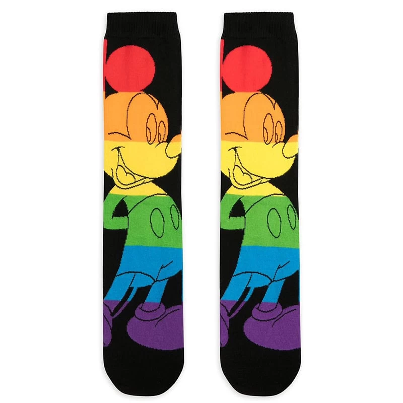 Follow the rainbow in total comfort wearing these soft knit socks. Multicolor hues back Mickey Mouse himself on a pair of striped souvenir stockings from Disney Parks.
