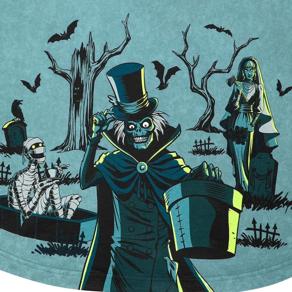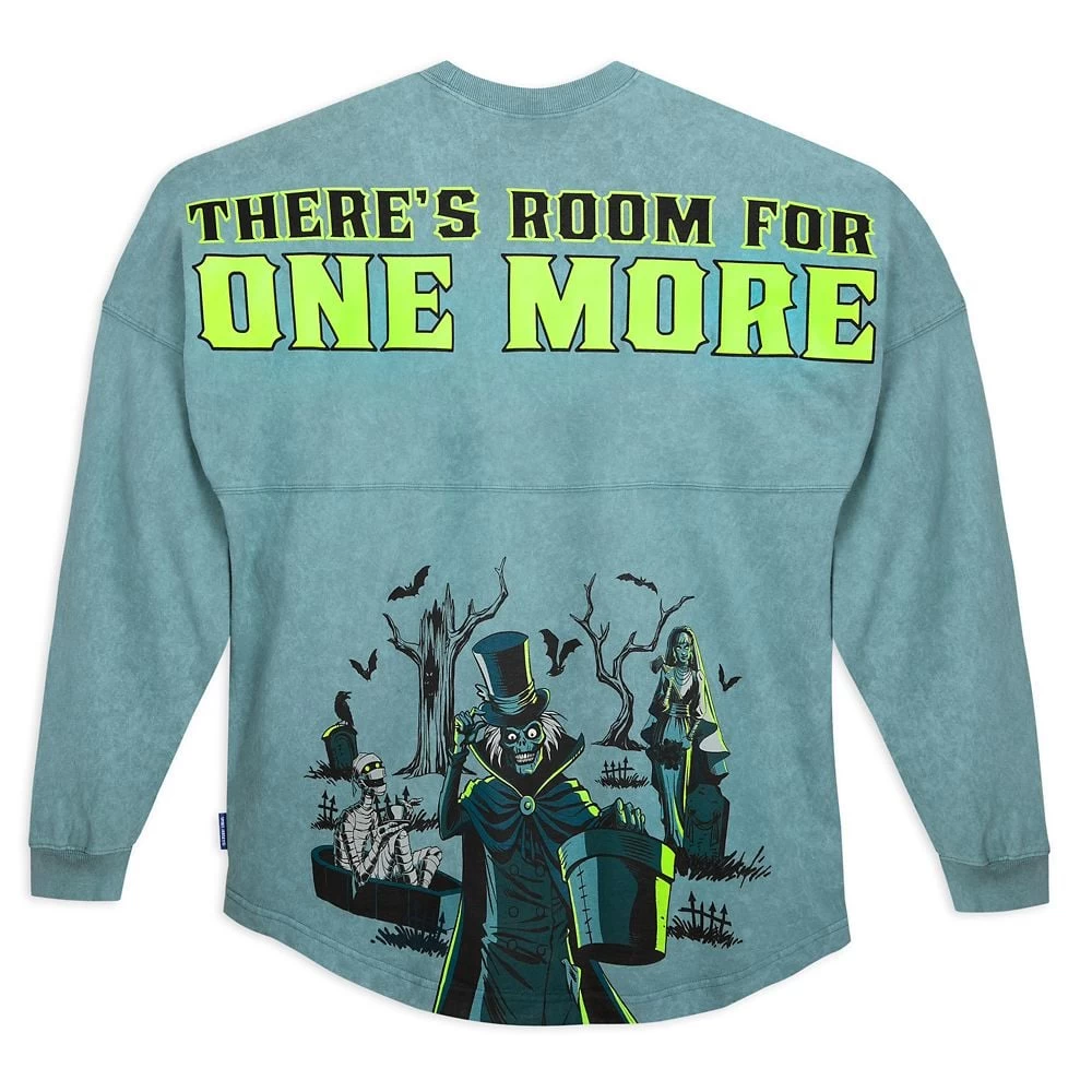 Ever get the feeling there is someone behind you? It’s the Hatbox Ghost of course in all his ghoulish glee on the back of this Haunted Mansion Spirit Jersey (no pun intended). ”There’s Always Room for One More,” as the glow-in-the-dark screen text says, echoing the Ghost Host’s haunting line from the beloved attraction, and the eerily familiar monogram is printed on the front. With glow-in-the-dark accents, it’s the perfect souvenir that is sure to follow you anywhere.