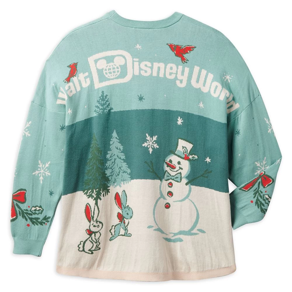 Mickey strolls through a holiday scene on this knit sweater with the famous Spirit Jersey cut. From the back shoulder, the Walt Disney World logo provides a jolly reminder of your holiday visit.