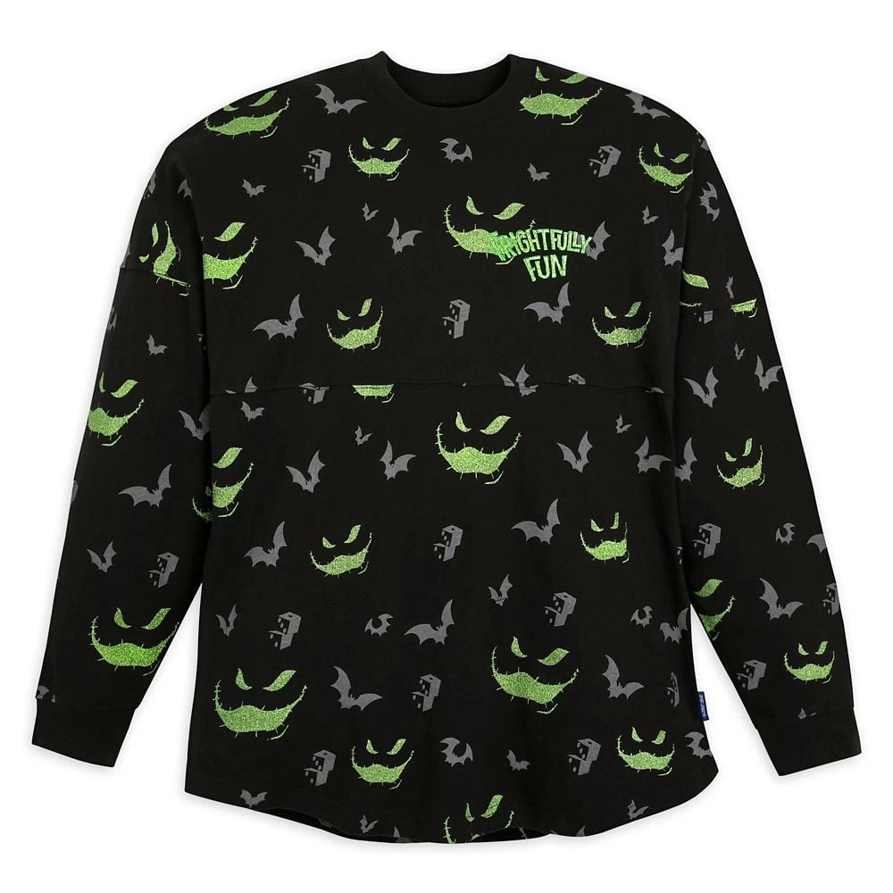 Wearing this ghoulish, glittering Oogie Boogie Spirit Jersey will be frightfully fun the whole night through, whether it’s Halloween or any other holiday escape.