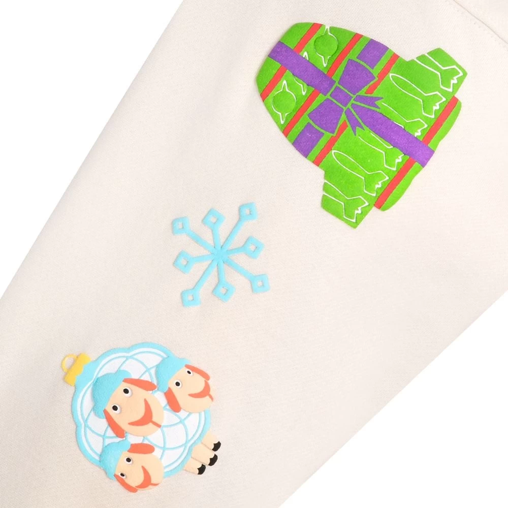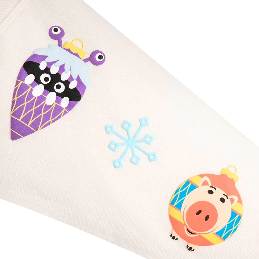 Animate your holiday season in this pullover Spirit Jersey with fuzzy checkered fleece midsection. Lots of your favorite Pixar characters and icons are reimagined as ornaments on the chest, shoulder and sleeves.