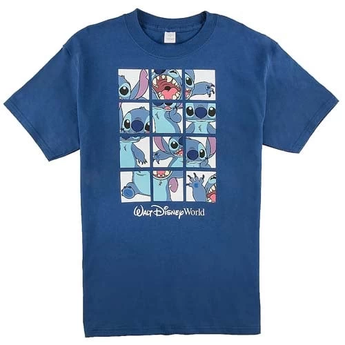 Stitch is all mixed up in blocks on the front of this tee, keeping him in confusion!