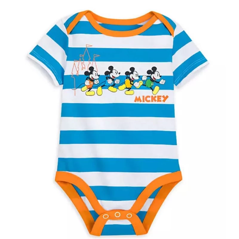 Baby will be bouncing through the Disney Parks alongside Mickey himself in this brightly striped all-cotton bodysuit for everyday fun times.