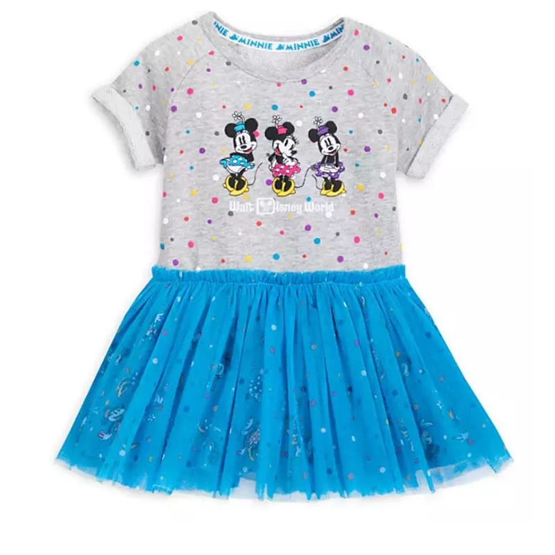 Let Minnie make baby’s first visit to Walt Disney World a stylish adventure in this adorable bodysuit! An allover polka dot print on the body and allover Minnie print on the skirt, plus layers of organza, maximize the sweetness.