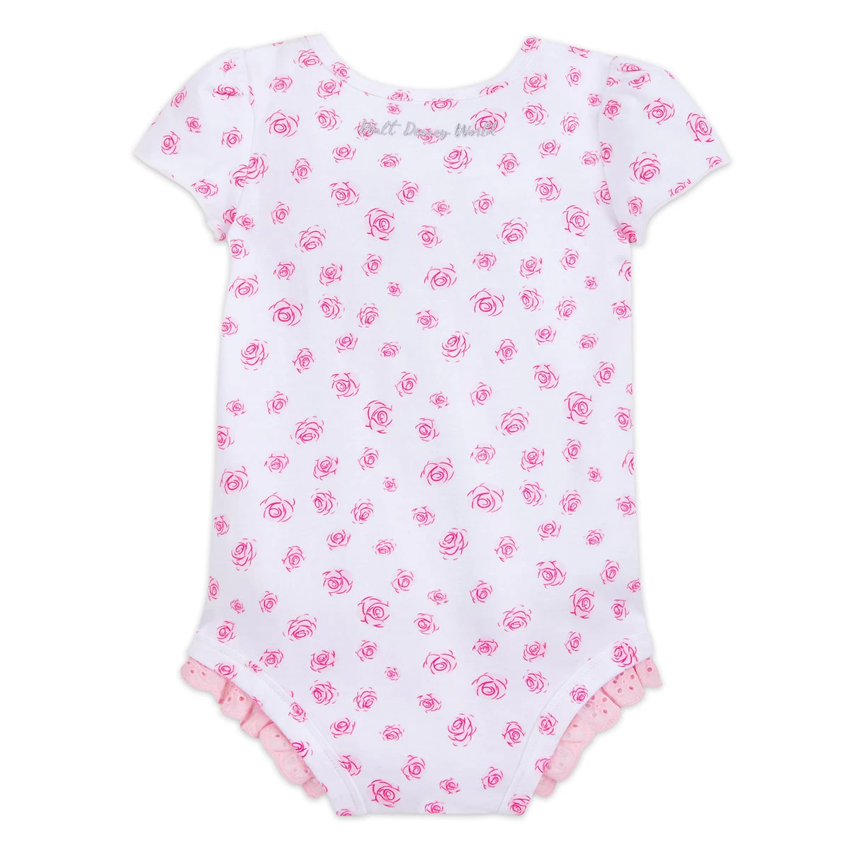 Minnie adjusts her glittery bow in a sweet style on the front of this all-cotton bodysuit. With ”Walt Disney World” embroidery on the back and an allover rose pattern, baby will look as pretty as a flower during their trip to the Park.