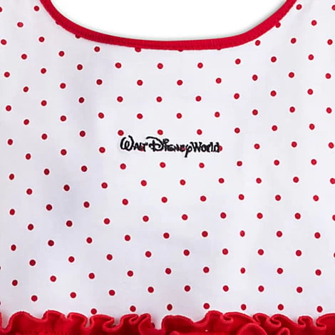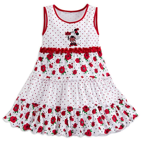 Baby will be budding with springtime beauty in this frilly floral print dress with embroidered Minnie Mouse applique, ruffled tiers, and contrast trims – direct from Walt Disney World Resort.