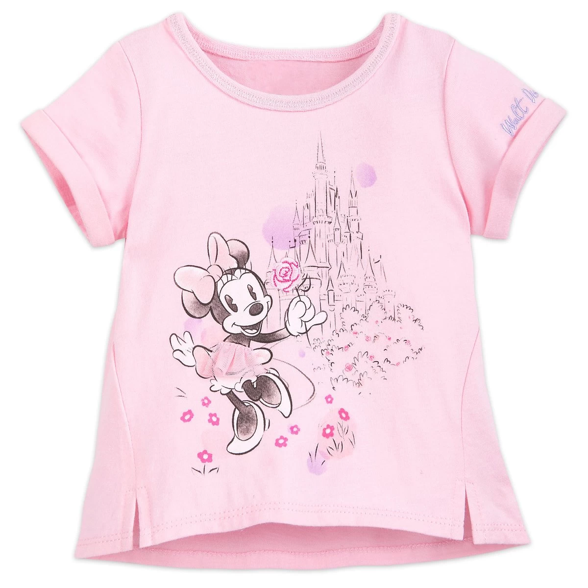 Minnie sprinkles a spoonful of sugar on top of your Walt Disney World visit with this souvenir tee for baby featuring ”Sweet Minnie” art styling, Cinderella Castle, and special embroidered touches.