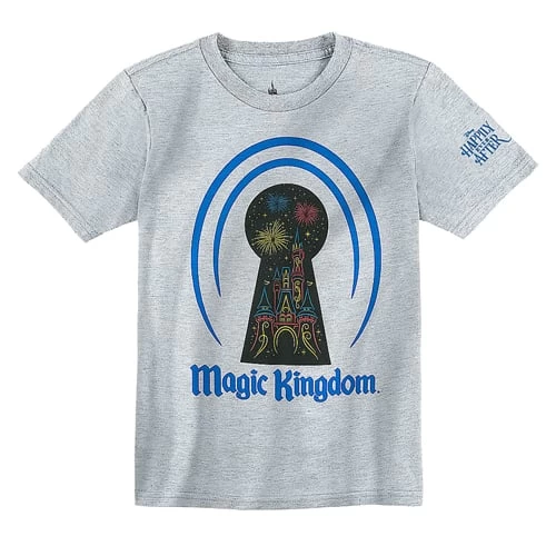 Disney World now has a new fireworks show called Happily Ever After. You can see a sneak peek of it and the castle through the keyhole on this child shirt. Be one of the first to own a souvenir from the newest show in town!