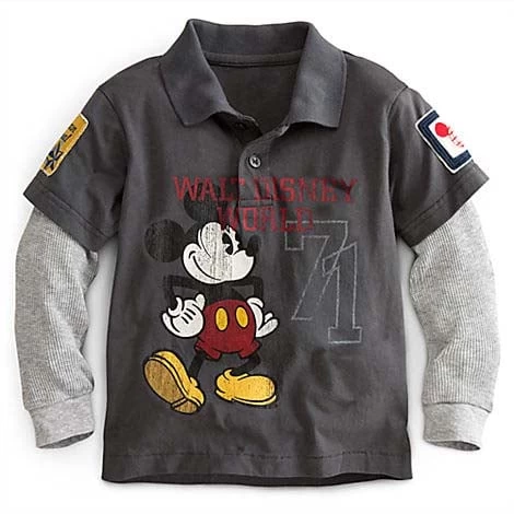 Cool day play will always be warmer in this button-up polo tee with collar and double-up thermal sleeves for a layered look without the bulk. Mickey Mouse and Walt Disney World art make this a sunny souvenir for the chilly season.