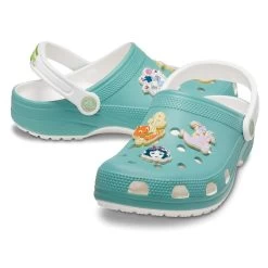 - Three molded Jibbitz vinyl charms on each shoe