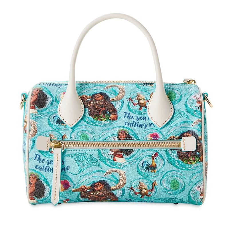 This stylish satchel by Dooney & Bourke is calling you! A swirling sea of character art that includes Moana with Pua, Maui, Hei Hei, and Kakamora decorates the coated cotton exterior of this compact bag, which features interior pockets and key hook, making it an accessory fit for adventure.
