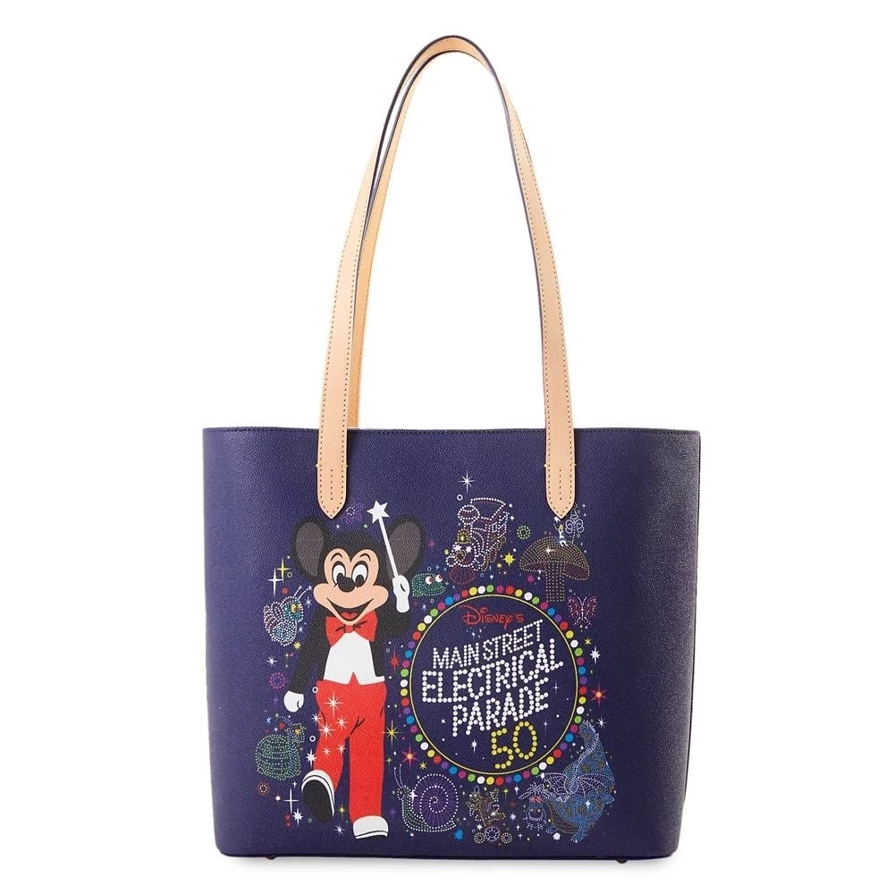 Brighten up your day with this Dooney & Bourke tote celebrating the 50th Anniversary of the Main Street Electrical Parade at Disneyland. Sure to become a current favorite, this bag captures the occasion as Mickey leads the popular nighttime event with its colorfully illuminated floats.