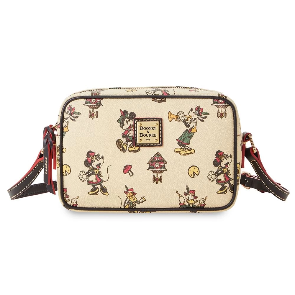 Dressed in classic traditional German costumes, Mickey and his friends display their musical talents on the allover print of this crossbody bag by Dooney & Bourke. The compact design includes an adjustable shoulder strap providing hands free convenience whether you’re traveling to Deutschland or Disneyland.