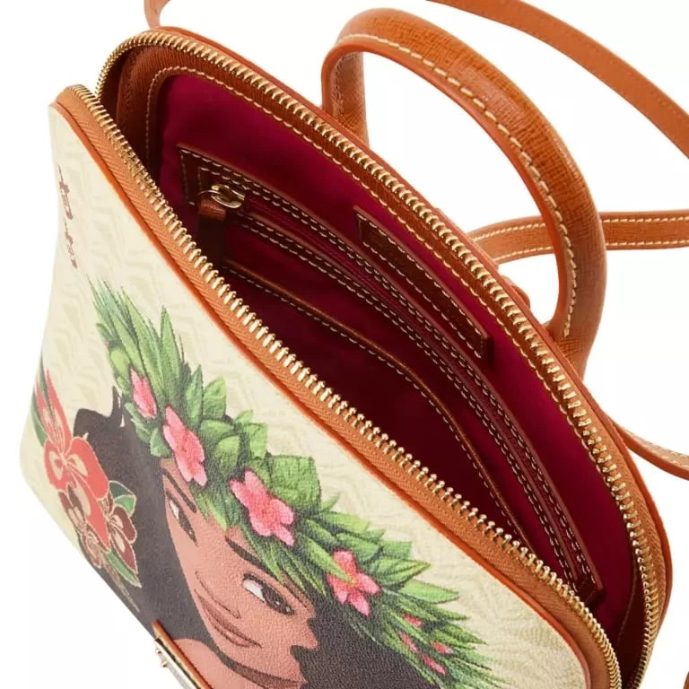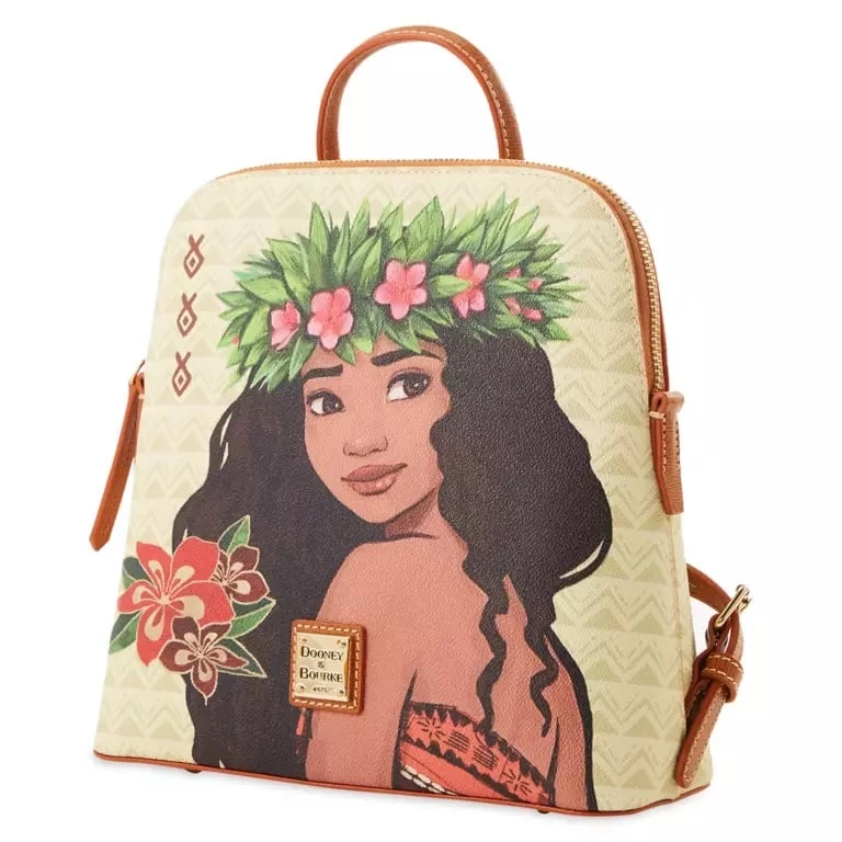 When heading out on a seafaring adventure or perhaps somewhere a little closer to home, you can carry your essentials in this Moana backpack from Dooney & Bourke. The coated cotton design features a dramatic portrait of the teenage wayfinder against a subtle allover graphic background. With shoulder straps and carry handle, this bag is as versatile as it is stylish.