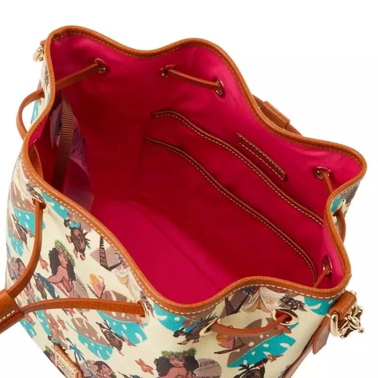 When heading out on a seafaring adventure or perhaps somewhere a little closer to home, you can carry your essentials in this Moana drawstring bag from Dooney & Bourke. The coated cotton design features a colorful allover pattern of the teenage wayfinder and the menacing-looking Kakamora!