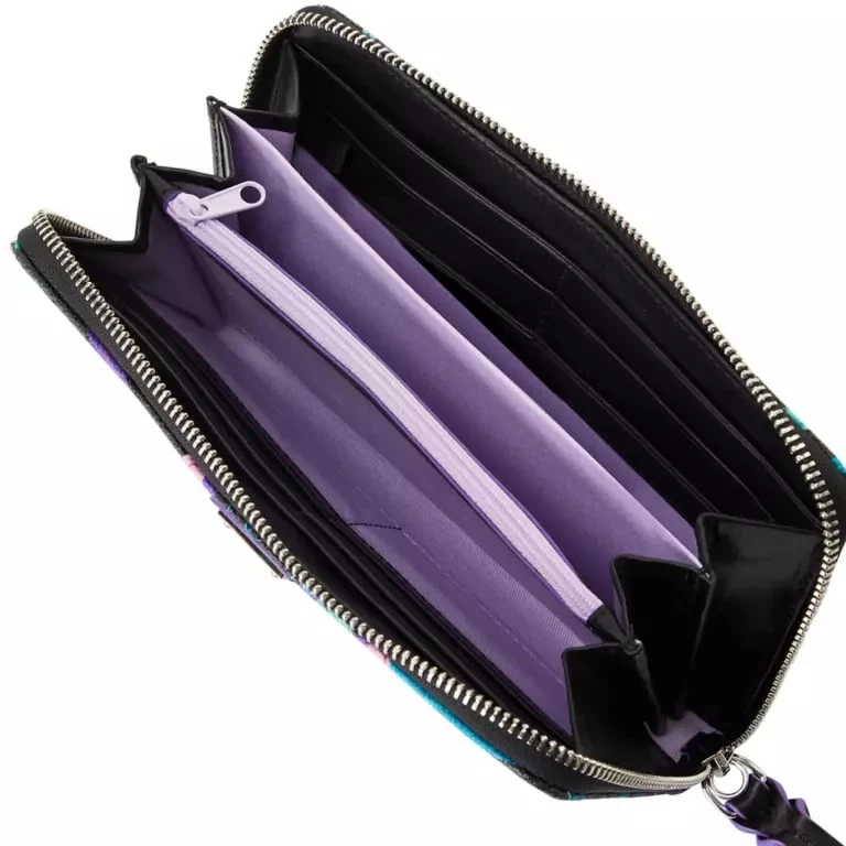 Inspired by The Haunted Mansion attraction, this wallet is frightfully fashionable! The Hatbox Ghost, Madame Leota and the Hitchhiking Ghosts are among those who make specters of themselves in the allover print on this coated cotton purse. With its stylish design, which features a detachable wrist strap, you’d be a foolish mortal not to get it before, like many of The Haunted Mansion’s inhabitants, it disappears!