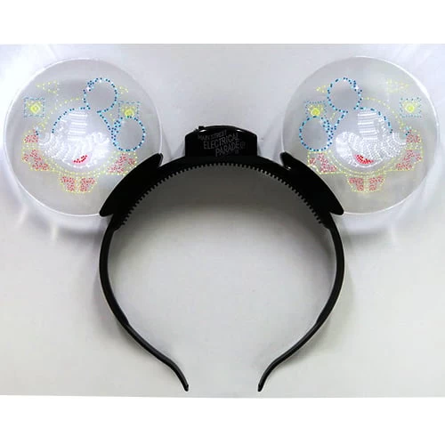 - Translucent ears feature Mickey Mouse which phases through colors as if he’s made of twinkling lights