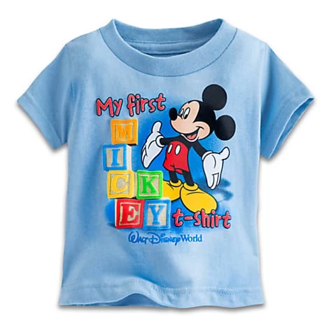 Baby will enjoy a memorable visit to Walt Disney World wearing his ”My First Mickey” Tee, direct from Disney’s vacation kingdom, and made in the cool comfort of 100% cotton jersey knit.