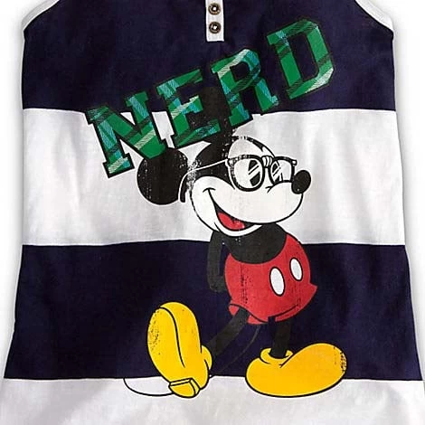 Celebrate the geek lifestyle with Mickey in nerd costume on a stylish tank tee with sheer burnout fabric and fancy trims.