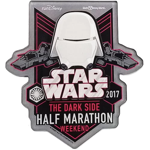 - This item features the runDisney Logo, Walt Disney World Logo, Star Wars Logo, and of course, the wording THE DARK SIDE HALF MARATHON WEEKEND. Also features the helmet of the infamous Imperial Snow Trooper.