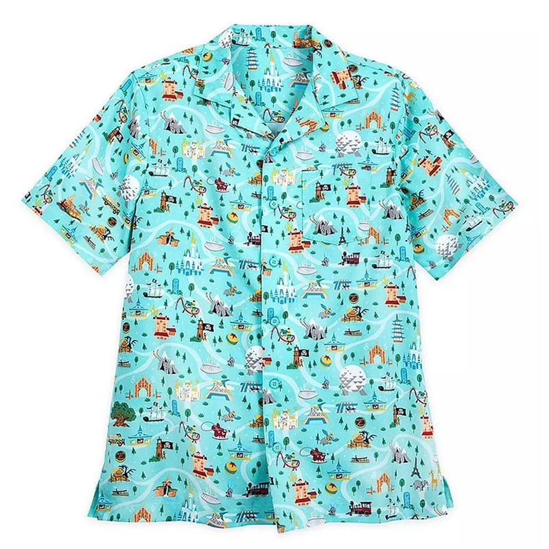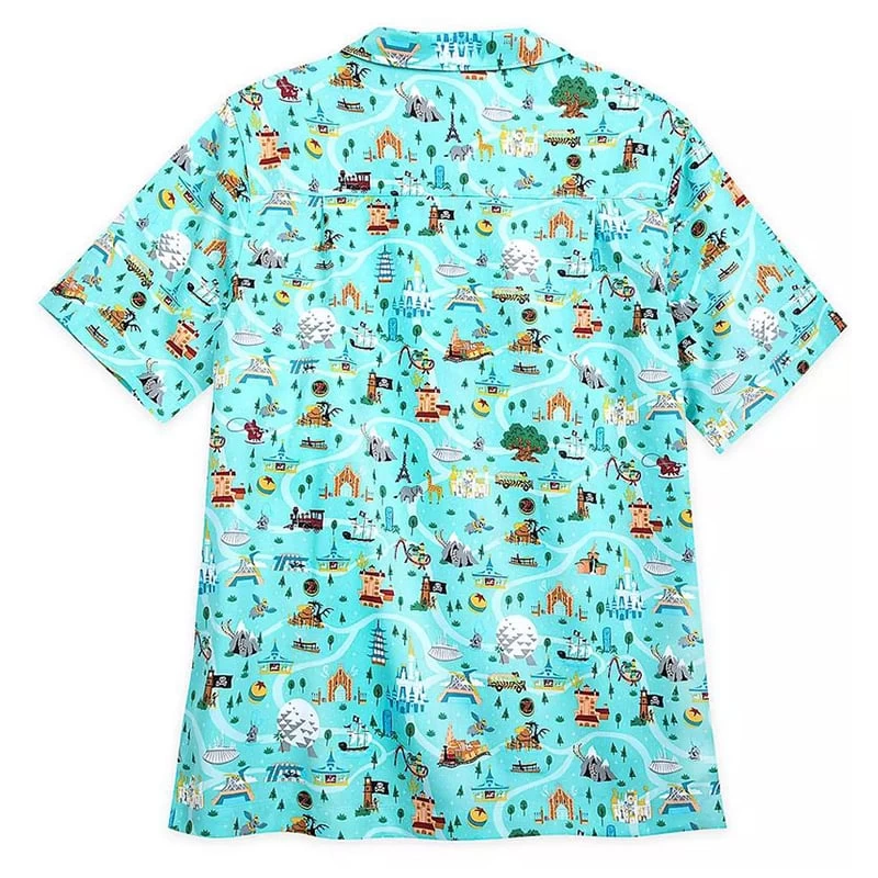 Relive happy memories of your trip to Walt Disney World everywhere you go in this colorful woven shirt. The allover print on this soft, button front top features icons of popular attractions found at Walt Disney World, including Cinderella Castle, Space Mountain, and Spaceship Earth.