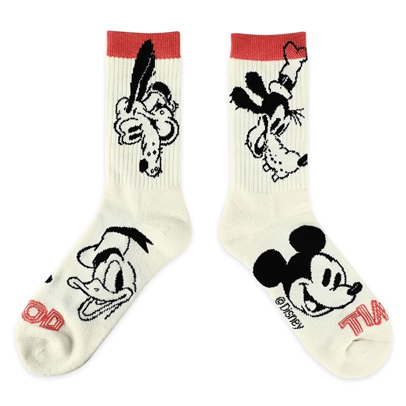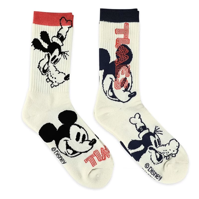 Good times await with Mickey, Donald, Goofy, and Pluto on these comfy knit socks. Each of the two pairs feature intarsia designs incorporating vintage art of the gang and ”good times” text.