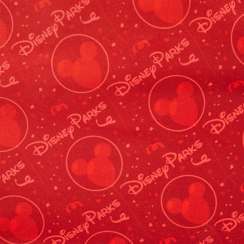 - Disney Parks logo and Mickey Mouse balloon patterned fabric lining