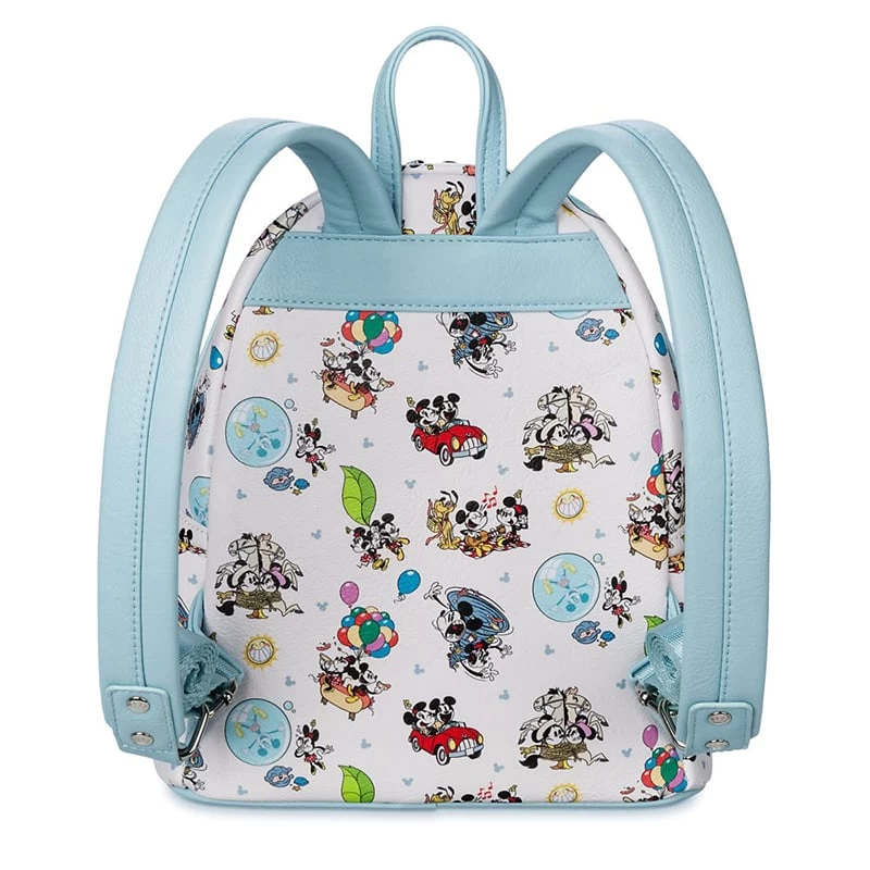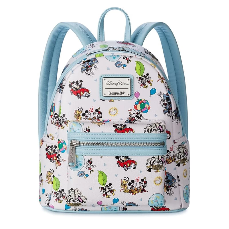 Carry daily essentials on all your comic adventures in this cool cartoon backpack by Loungefly featuring Mickey and Minnie Mouse. Simulated leather and allover animated pattern will pack a smile for every trip.