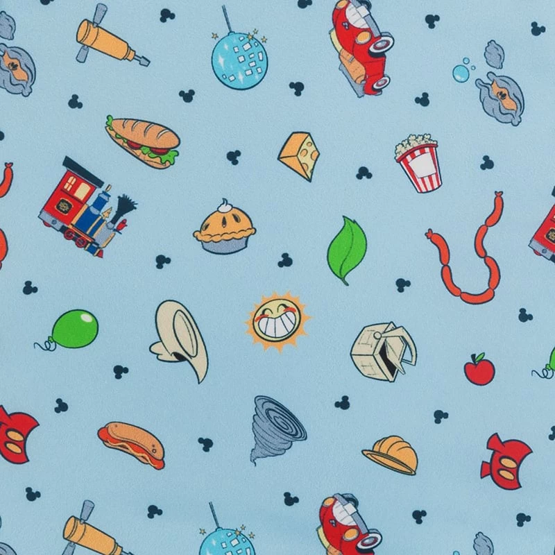 - Allover print pattern features Mickey, Minnie, and Pluto in contemporary cartoon style