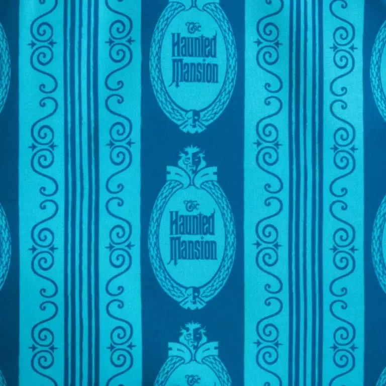 Inspired by the wallpaper featured inside The Haunted Mansion, this simulated leather bucket bag from Loungefly is guaranteed to cause quite a chain reaction wherever you go. The allover design includes glow-in-the-dark eyes, while the attraction’s iconic oval plaque is featured on the front for a frightfully cool detail. In addition to the black shoulder strap, the novel bag has a metallic blue chunky chain handle that is bound to make you the envy of others.
