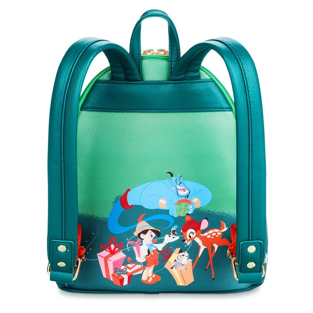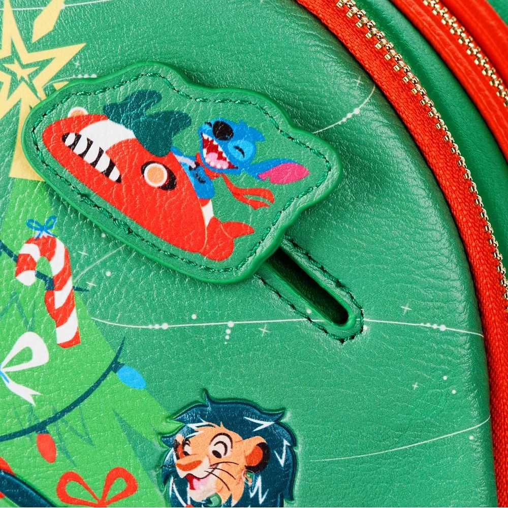 A wonderful world of classic Disney characters gather ’round the Christmas tree to celebrate a happy holiday season with you and this Loungefly mini backpack. Embossed screen art on front with matching pattern on sides and back lets admirers of the animated classics carry their seasonal essentials to wherever the party leads. Tree topper star glows in the dark or under black light.