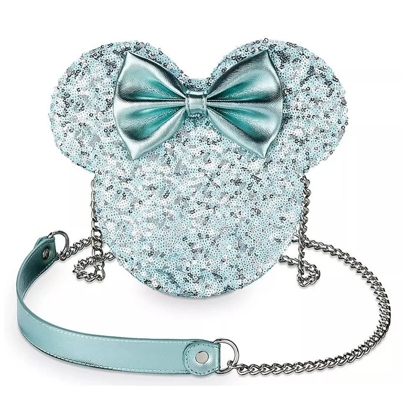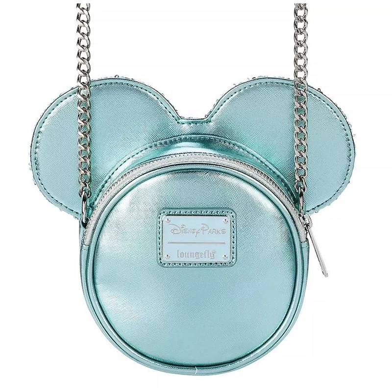 Be a fashion icon when you step out wearing Loungefly’s Minnie Mouse crossbody bag with polka dot interior. The dazzling Arendelle Aqua metallic material and sequins are sure to turn heads and inspire smiles.