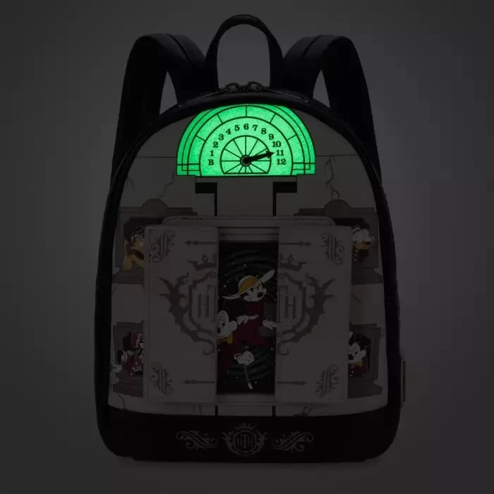 Pack your bag for a stay at the Hollywood Tower Hotel . . . if you dare. This frightfully cool mini backpack by Loungefly is inspired by The Twilight Zone Tower of Terror attraction. Mickey and his friends are featured as bellhops at the haunted hotel, while the sliding doors on the front of this simulated leather bag open to reveal a glimpse into the twilight zone itself!