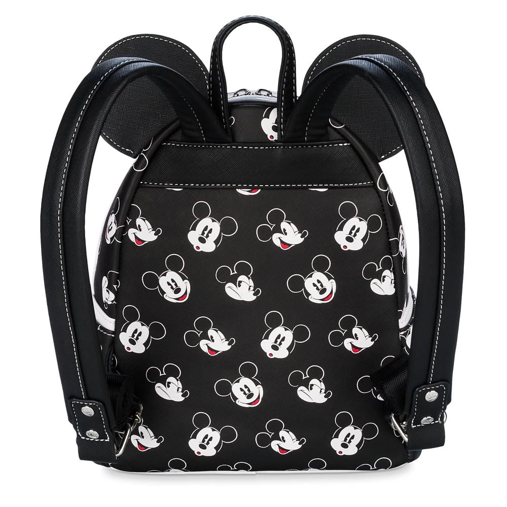 A pie-eyed Mickey is in an expressive mood on this mini backpack from Loungefly. The simulated leather design has an allover print of Mickey’s face with multiple different poses, while the front pocket features an appliqué of his smiling face peeking out!