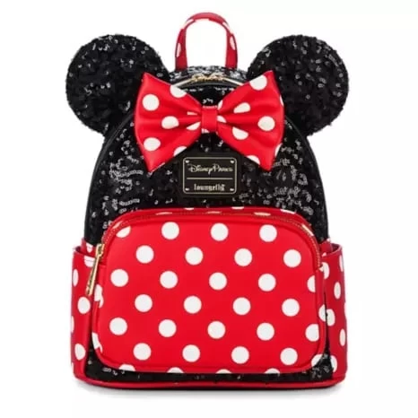 Style reaches iconic status with this dazzling Minnie Mouse sequin Loungefly mini backpack. Minnie’s signature look is celebrated with black sequins and her cheerful red and white polka dots. Classic Loungefly elements include a fabric lining featuring vintage-style art of lovely Minnie, a double zipper main compartment, front zip pouch and more. Sure to bring the smiles every time you carry it, this bag feels like getting dressed up with a very best friend.