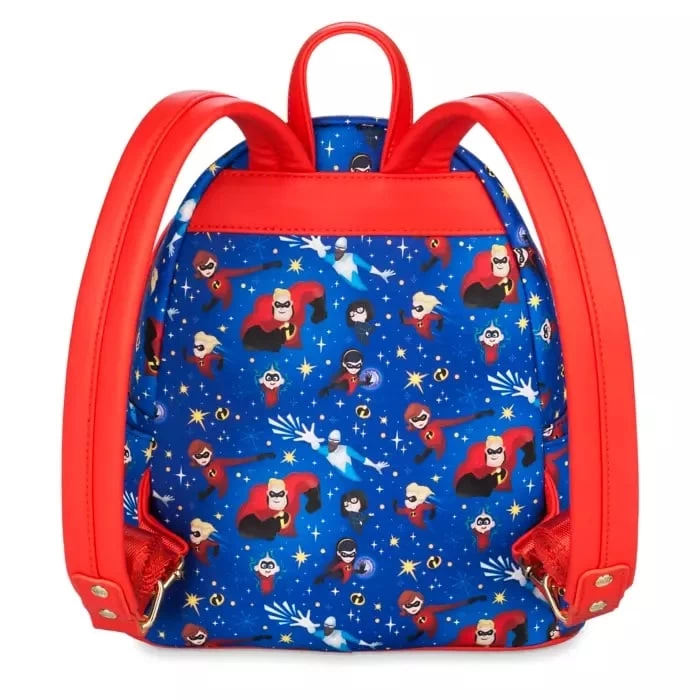 The world’s favorite family of Supers are featured in the allover print of this Incredibles mini backpack from Loungefly. Violet, Dash, Jack-Jack, Elastigirl, and Mr. Incredible are joined by Frozone and Edna Mode on this simulated leather bag that makes a powerful statement.