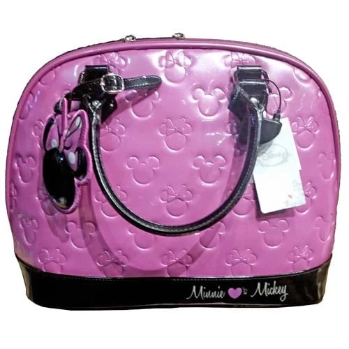 You’ll be on a roll with this Minnie Mouse Bowling Bag. Fashioned in shimmery orchid and black vinyl, it features an indented Minnie and Mickey icon design, plus a Minnie head tag for a satchel with striking style.