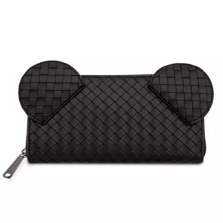 This on-trend wallet by Loungefly features an allover woven design in black simulated leather and 3D Mickey Mouse ears. With eight credit card slots and two billfold compartments, this wallet will hold all your essentials in style.