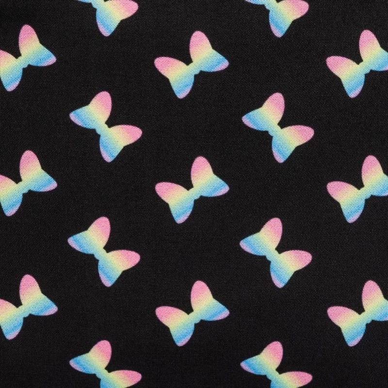- Fabric lined with pastel rainbow bow pattern