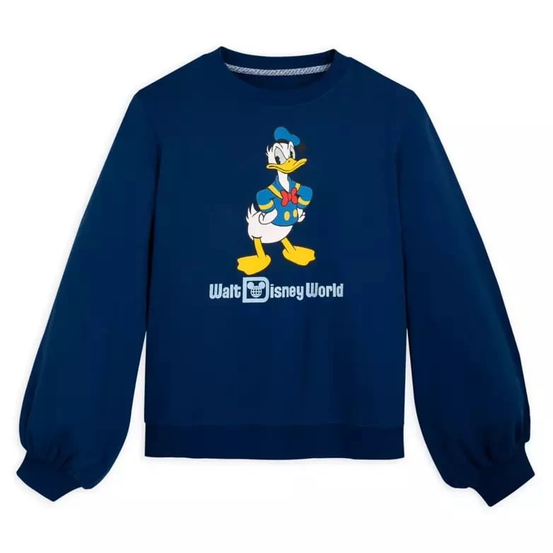Smooth those feathers. You won’t lose your temper in the calming comfort of this lightweight long sleeve pullover sweatshirt featuring vintage-look Donald Duck graphics and French terry interior.