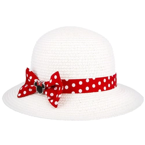 She’ll find a spot of fun in the sun wearing this floppy polka dot hat featuring Minnie Mouse’s signature style!